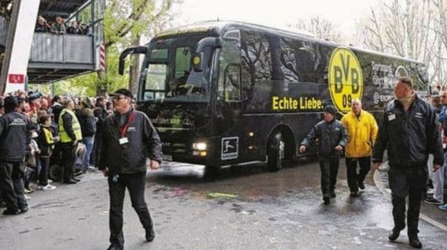 Las explosiones se produjeron a 10 kilómetros del estadio Signal Iduna Park, cuando los jugadores abandonaban el hotel de la concentración. Los artefactos estallaron afuera del bus y provocaron la rotura de algunos de los vidrios del vehículo.