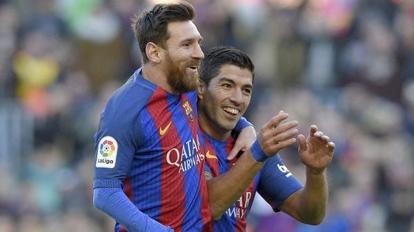 en Barcelona, junto a Luis Suárez, para la televisión uruguaya. Su expresión
