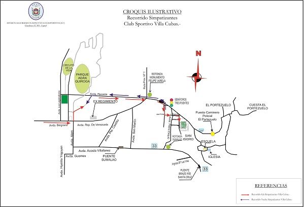 En tanto que, el retorno de los simpatizantes del Club Sportivo Villa Cubas se hará de forma inversa a la mencionada precedentemente, finalizando en la sede del Club.