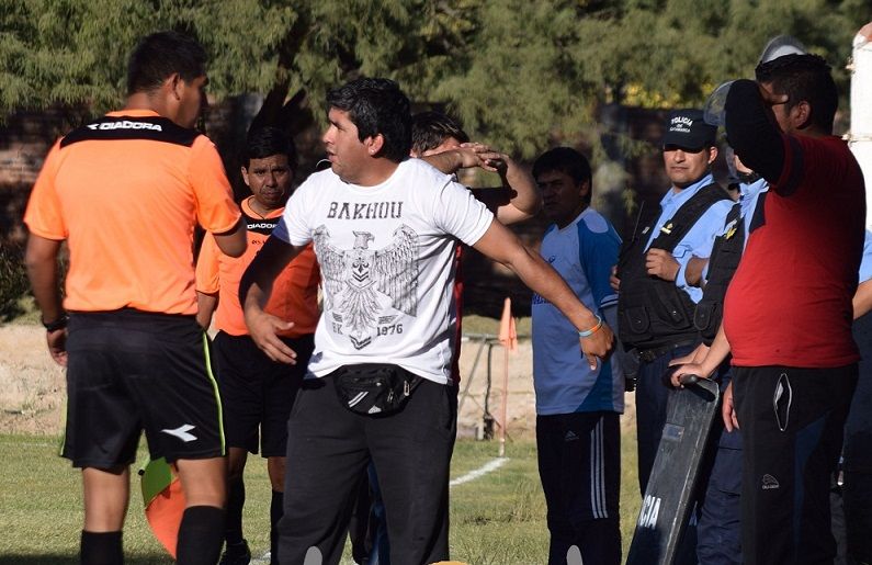 El entrenador de Defensores de Fiambala, Renzo Bayon, molesto