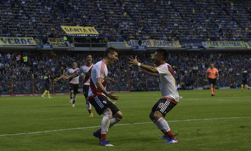 A los 14, Ponzio recuperó, Driussi tiró un centro desde la derecha y Gonzalo Martínez sacó una tremenda volea desde la izquierda para anotar el 1-0 para el Millonario. Golpe de efecto en un Superclásico en el que el visitante no dominaba.El gol tuvo su efecto positivo para River. Boca sintió el impacto y los de Gallardo intentaron aprovecharlo. Lo tuvieron Ignacio Fernández primero y Driussi después, pero no encontraron la puntería para convertir.