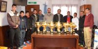 Luego les entregó los trofeos para el torneo que se está