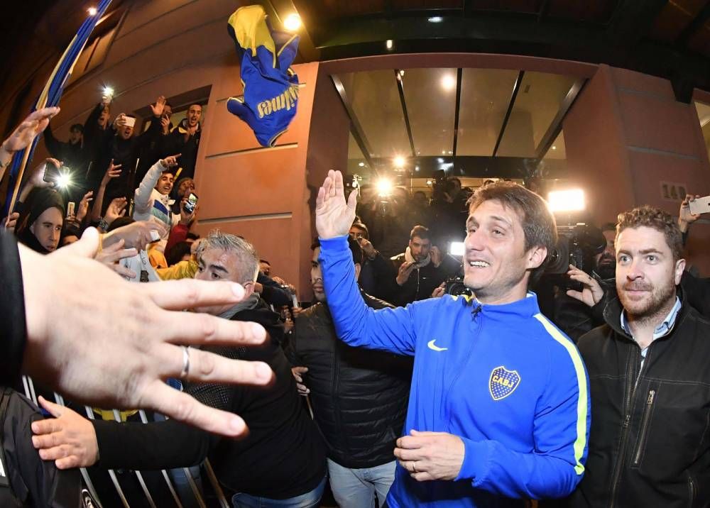 entrenador de Boca, Guillermo Barros Schelotto salió esta noche a saludar a los