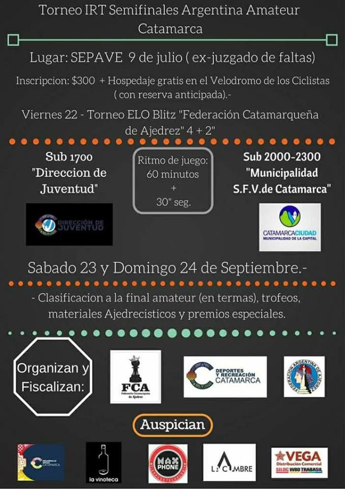 El evento que es organizado y será fiscalizado por la Federación Catamarqueña de Ajedrez, y cuenta con los auspicios de la Secretaría de Deportes de la Provincia, la Dirección de Deportes de la Municipalidad de la Capital, la Dirección de Juventud, el Ministerio de Desarrollo Social, y las firmas comerciales La Vinoteca, Max Phone, La Cumbre, Vega Distribución Comercial.
