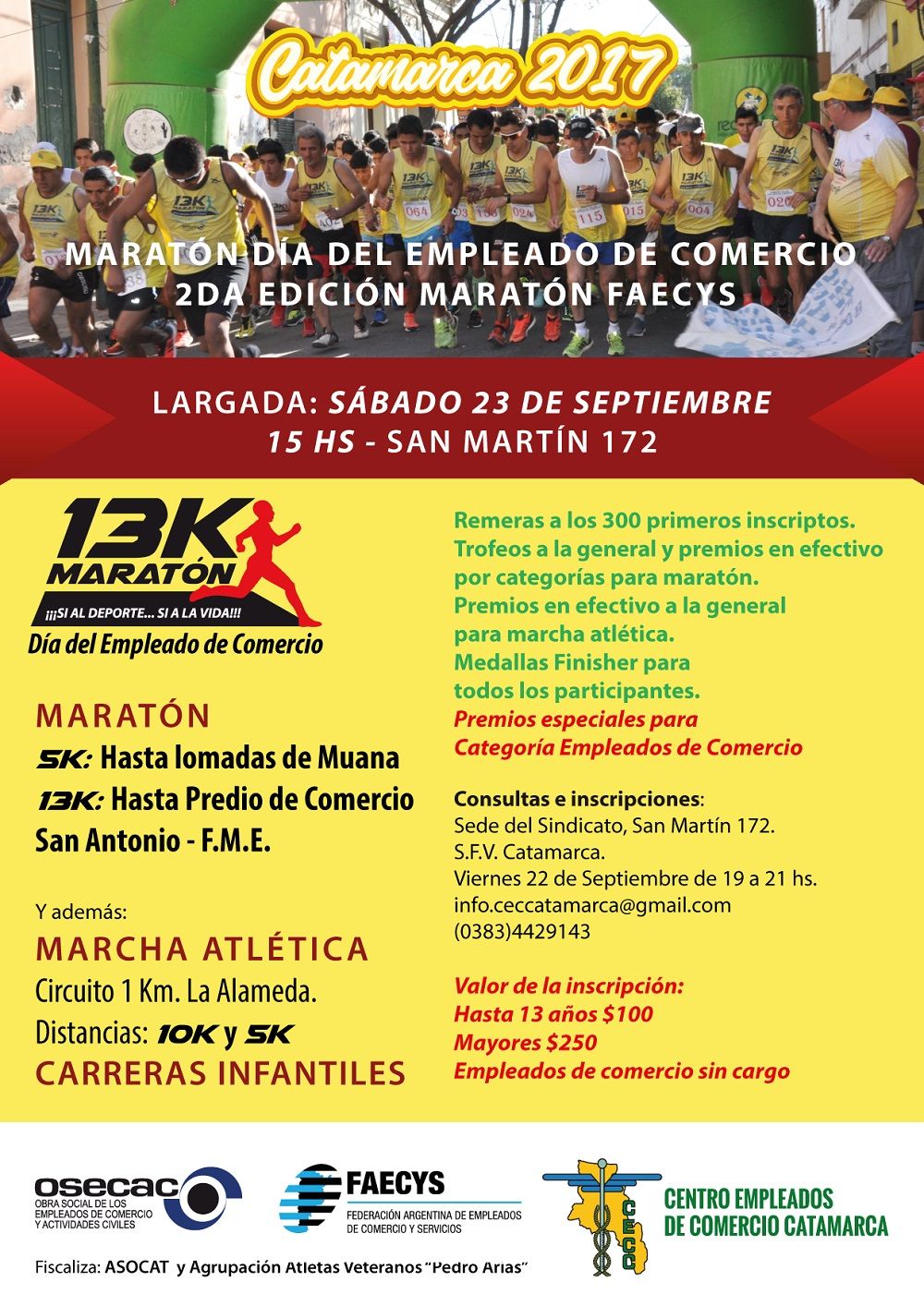 CECC con distancias de 5km y 13km. Recorrido: San Martín 172 hasta Av. Alem,