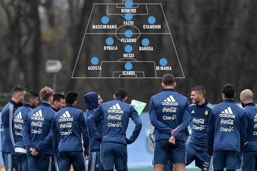 20.30, sería éste: Romero; Mascherano, Fazio y Otamendi; Dybala, Pizarro,
