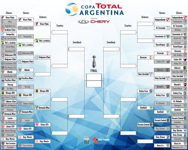 De esta manera, el Fortín enfrentará a Huracán en los 4tos. de final. En la misma instancia, el Tomba jugará ante Banfield. Y Rosario Central, se medirá con el vencedor Boca vs. Guillermo Brown de Puerto Madryn. En total son 12 los equipos ya clasificados a 4tos.