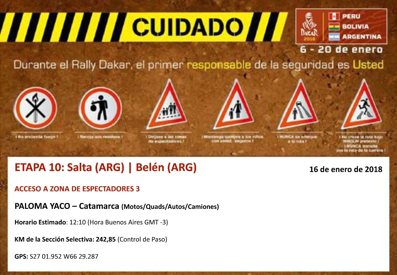 Acceso: DESDE SANTA MARIA DE LA PROVINCIA DE CATAMARCA, TOMAR DIRECCION SUR POR LA RN40 POR 50KM HASTA PIE DE MEDANO - LA ZONA DE PUBLICO ESTA EN LA LARGADA DE LA ETAPA.