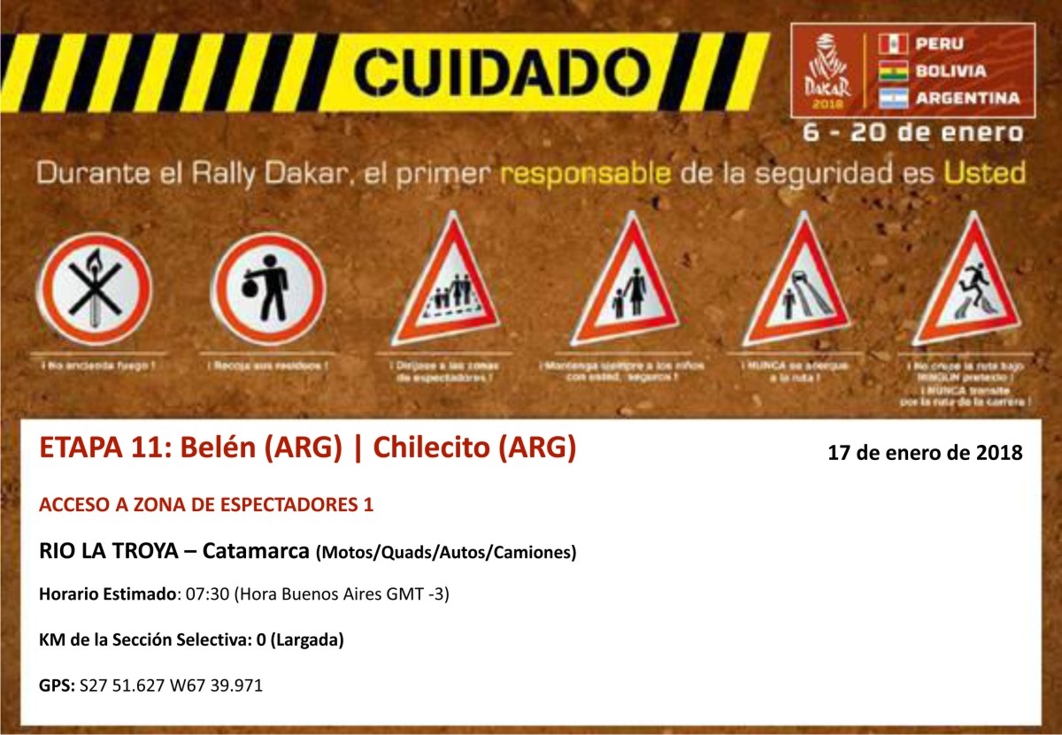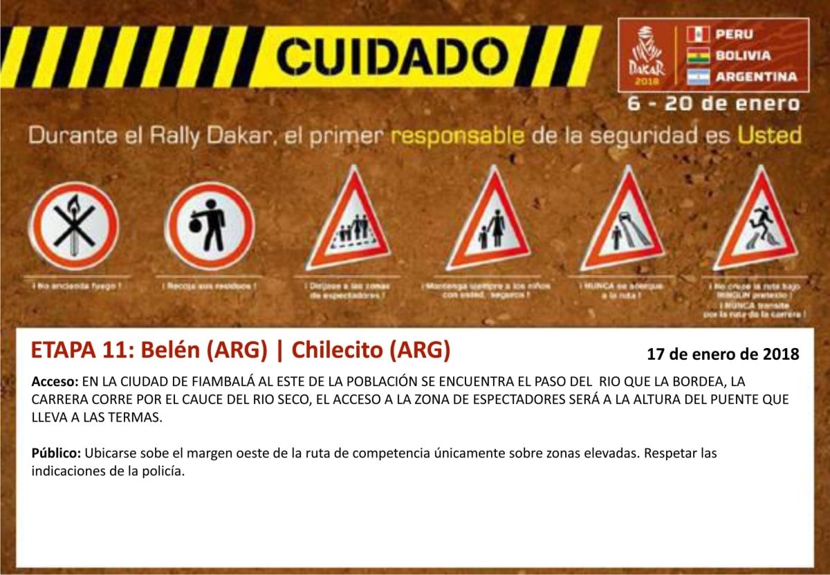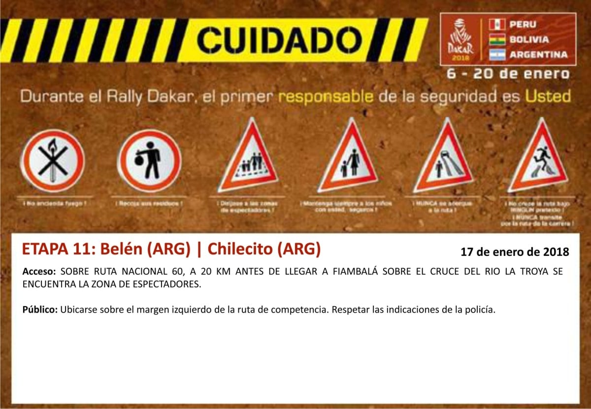 Público: Ubicarse sobe el margen oeste de la ruta de competencia únicamente sobre zonas elevadas. Respetar las indicaciones de la policía.