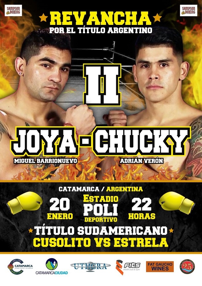 Enfocado en el choque de este sábado con Adrián “Chucky” Verón, al cual ya noqueó en seis asaltos en octubre último, “La Joya” también es campeón Latino CMB Welter (hasta 66,678 Kg. / 147 Lbs.) y tras el duelo con el bonaerense aspira a dar el salto definitivo al campo internacional.