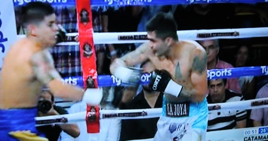 El combate tuvo lugar este sábado en el Polideportivo “Fray Mamerto Esquiú de la Capital catamarqueña, ante más de 3.000 entusiastas espectadores, que vivaron estruendosamente al ganador con el característico “Zurdooo…Zurdoooo”, como se conoce en nuestra provincia al natural de Polcos, Valle Viejo.