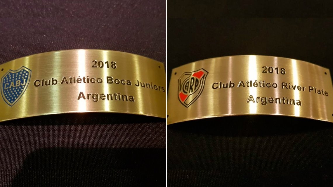 Se trata de la chapa que se le sumará al trofeo cuando se conozca al ganador del duelo. Tal como marca la tradición, quien resulte campeón sumará su nombre a la base de la Copa Libertadores.