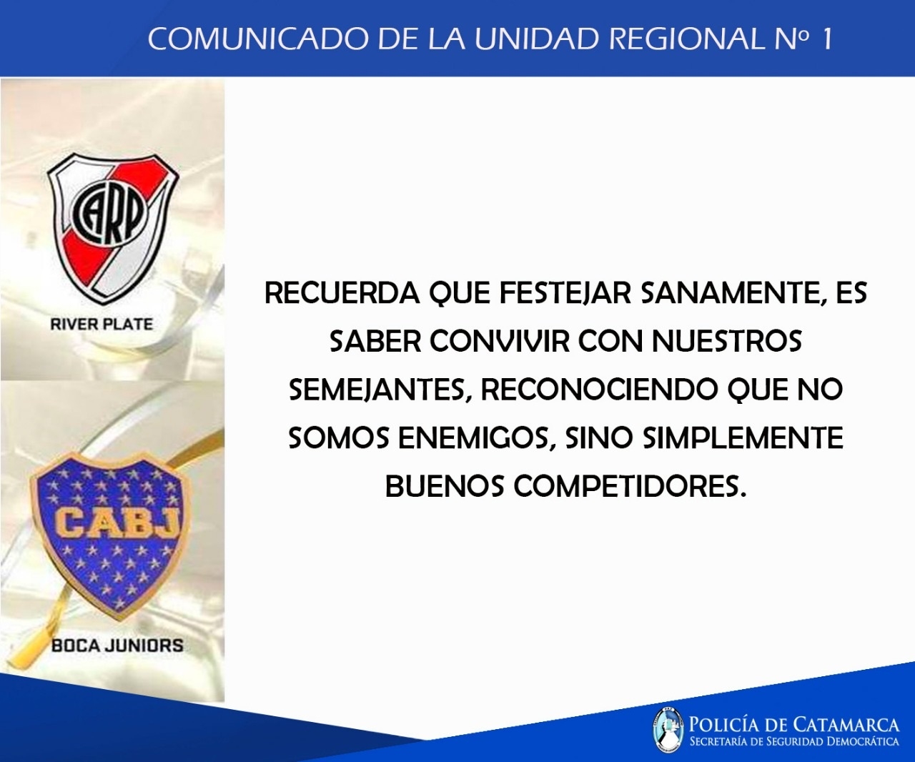 Una vez más, se recomienda a los integrantes de la parcialidad que se convoque en la Plaza 25 de Mayo, según el resultado del partido, no concurrir en estado de ebriedad, y evitar llevar elementos que puedan ser usados para agredir, tales como palos de banderas, palos para bombos, cualquier elemento contundente, etc.