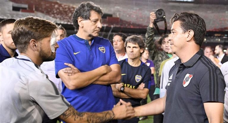 En tanto comentó: "Esperemos que mañana podamos vivir la fiesta que se empañó hoy. Como dice la canción el show debe continuar y nosotros que somos los protagonistas tenemos que salir a escena cómo estemos y no es la final del mundo, es la final de la Copa Libertadores de América".