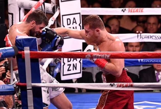 El latinoamericano trabajó sobre el cuerpo de su rival desde el minuto uno de la pelea y acabó con él por esa misma vía. Álvarez derribó al campeón súper mediano de la Asociación Mundial de Boxeo, cuatro veces antes de que la pelea fuera detenida por el árbitro. Infobae.