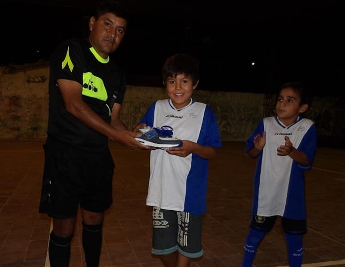 Allí describió “el buen y emocionante gesto que tuvo el árbitro Julito "Papita" Rojas, entregándoles un juego de camisetas a los chicos de ‘Los Pibes del Oeste’, del sector de Los Bajos, en San Isidro, y regalarle un par de zapatillas nuevas a un nenito integrante de este equipito formado por Lucas Varela”.