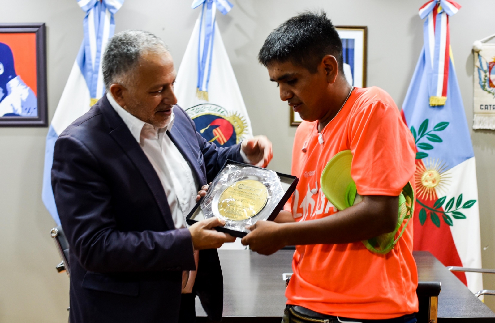El joven dijo: “Yo soy un chico especial y llegué a estar con los mejores del mundo” y agradeció al Senador porque es la primera vez que recibe un reconocimiento, recordando la anterior entrega por parte del Legislador, de zapatillas especialmente diseñadas para corredores. Dichas zapatillas están realizadas con un “sistema de amortiguación Boost” ayudan a conseguir una mayor velocidad con menor despliegue de energía.
