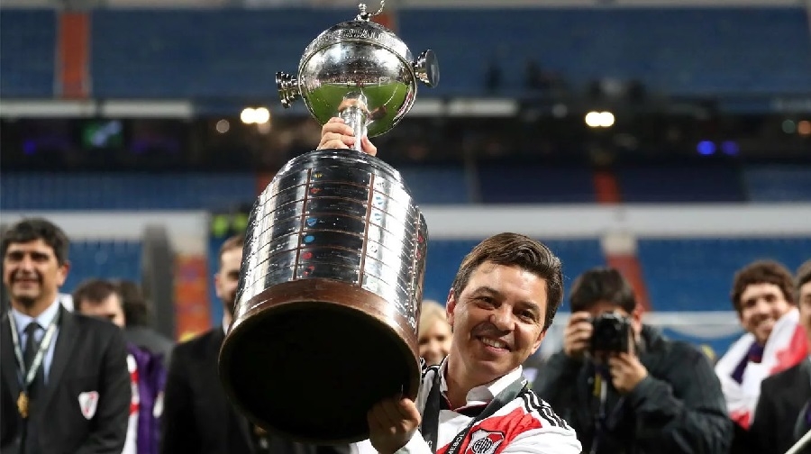 Con la camiseta de River puesta y la medalla de campeón adornando su pecho, Gallardo agarró el trofeo. Lo miró, le sonrió. Le dio un beso. Lo abrazó, Lo alzó. Lo festejó como si fuese la primera vez. Y aunque no lo es, el sabor de lograrla ante Boca es especial como nada.