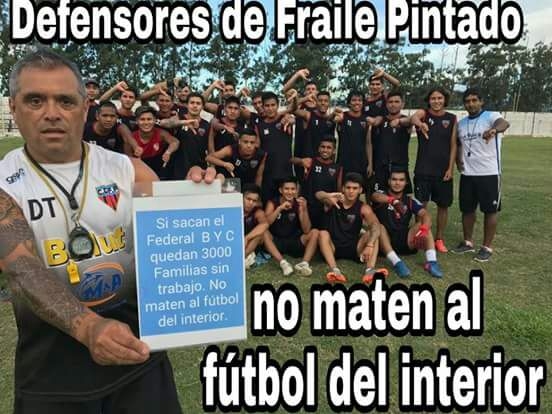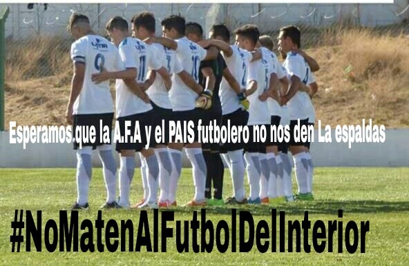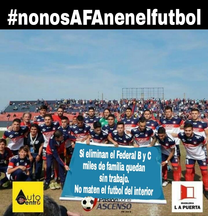 También promueven la difusión de fotografías de planteles de fútbol, de distintos puntos del país, exhibiendo la misma consigna de que “no maten al fútbol del interior”, y exhiben muestras de las pancartas que con igual slogan llevarán los dirifentes clubes del Federal “C”, en sus compromisos de este fin de semana.