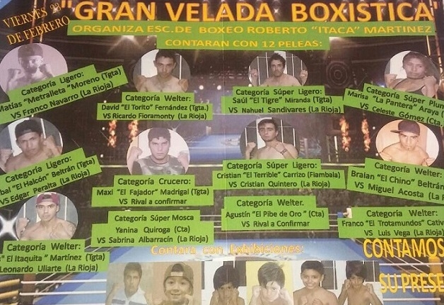 Con fiscalización de Federación Catamarqueña de Boxeo (FCB) y con Manuel Cativa a cargo de la promoción, el espectáculo de los puños tiene respaldo de la Municipalidad de Tinogasta, gestión Sebastián Noblega.