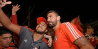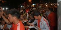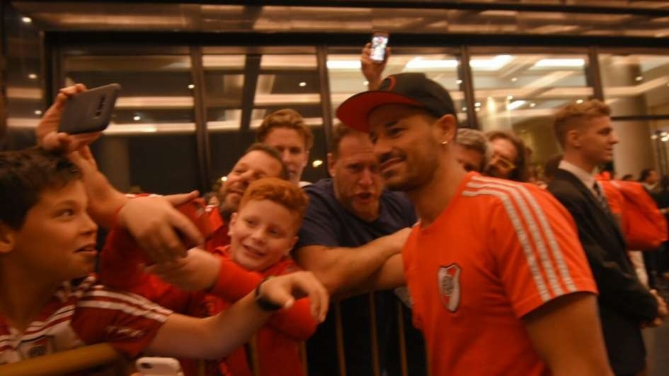 Es que cerca de las 22 el colectivo que trasladaba al plantel que conduce Marcelo Gallardo llegó hasta el hotel y lejos de bajarse y no saludar a los fanáticos compartieron un momento y hasta regalaron algunos souveniers.