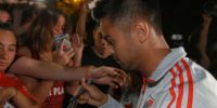 Los más solicitados por los hinchas fueron el mismo "Muñeco", Rodrigo Mora y Enzo Pérez, que junto al otro mendocino que tiene el plantel (Pity Martínez), se sacaron varias fotos.