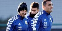 Los arqueros (Romero y Cavallero, ambos ya en Inglaterra) trabajaron aparte mientras que el resto de los jugadores hizo movimientos físicos y luego algunos trabajos con pelota, aunque la prensa sólo pudo observar los primeros 15 minutos del entrenamiento.