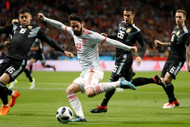 Jugando en el estadio Wanda Metropolitano de Madrid, España se impuso con los goles de Diego Costa, Isco (3), Thiago Alcántara y Aspas; el defensor Nicolás Otamendi, con un cabezazo tras un corner descontó para los de Sampaoli.