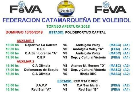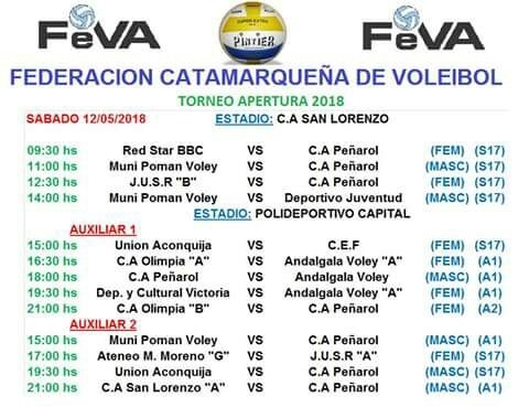 El día sábado 12 de mayo la actividad se concentra en la cancha de San Lorenzo de Alem, desde las 9 hs., y por la tarde en las dos canchas auxiliares del Polideportivo Capital “Fray Mamerto Esquiú”.