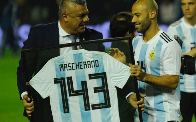 Mascherano fue homenajeado en la mitad de la cancha por Claudio "Chiqui" Tapia, presidente de la AFA, quien le entregó una camiseta enmarcada con el número 143 y el apellido del futbolista. Fue coreado por toda la Bombonera, porque el nombre del subcapitán ya está ligado a la Selección de por vida.