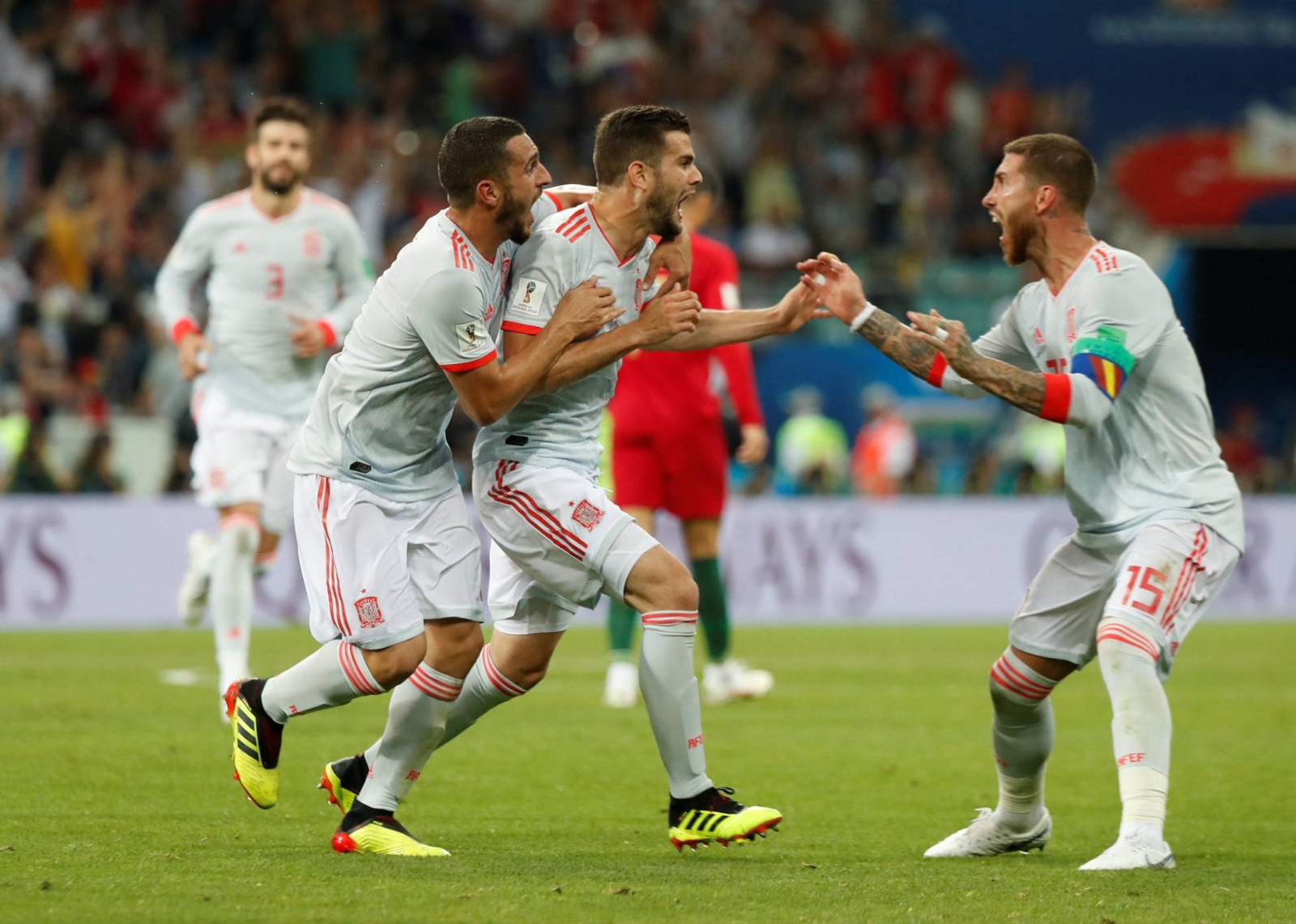 Solo cuatro minutos después, Nacho, el defensa que concedió el penalti que puso arriba a Portugal, le dio la vuelta al marcador con un golazo y dio la ventaja para España por 2-3.