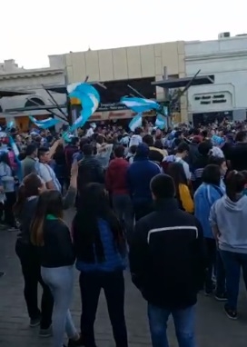 Como siempre ocurre, el punto de concentración fue la plaza 25 de Mayo, donde los catamarqueños coparon el principal de paseo público de la ciudad con banderas, gorros, camisetas y todo el color nacional.