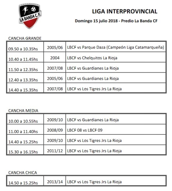 Además, en 6ta. división se medirán en un encuentro desafío los equipos de La Banda Club y Parque Daza, reciente campeón de la Superliliga Catamarqueña de Fútbol, que será un gran espectáculo para los seguidores de ambas instituciones.