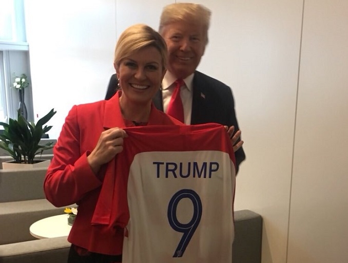 Grabar-Kitarovic se perdió el partido de semifinales frente a Inglaterra porque debió asistir a la cumbre de la OTAN en Bruselas, pero no perdió la oportunidad para promover a su selección.