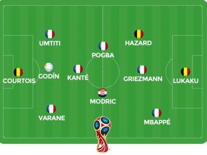 Umtiti: Junto a Varane, el gran motivo de que Francia consiguiera mostrarse siempre tan sólida en la fase defensiva. Además, marcó un importantísimo tanto frente a Bélgica en las semifinales, un cabezazo que abrió el camino del equipo hacia la final.