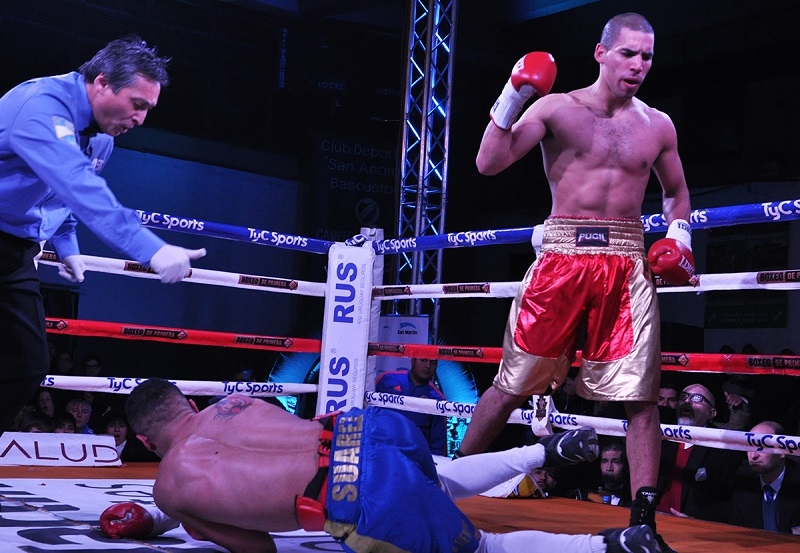 En un fugaz combate de semifondo, desarrollado en categoría superligero, el porteño Emiliano Araujo (63,500 kg. y 6-3-1, 1 KO) liquidó al local Jonathan “Yoni” Sosa (63,400 kg. y 7-8-2, 4 KOs), por nocaut técnico en el segundo asaltos, luego de sacar diferencias en el primero, en el segundo descargó una feroz combinación de izquierda en gancho a las costillas y cruzada a la mandíbula de un bonaerense que cayó conmovido a la lona con su cabeza sobre la última cuerda, obligando al árbitro Antonio Zaragoza a detener correctamente las acciones.