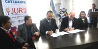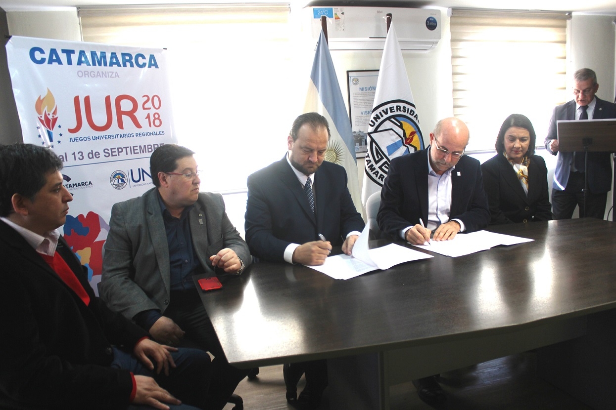 En este marco, el rector de la UNCA, Ing. Flavio Fama, firmó un convenio de colaboración con el secretario de Deportes Maximiliano Brumec, para el desarrollo de las actividades deportivas en instalaciones del Polideportivo Capital y otros espacios con los que cuenta esta Secretaría.