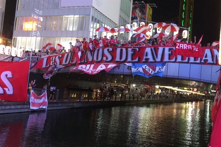Cientos de hinchas se dieron cita para apoyar al equipo de Ariel Holan. Se apostaron en las dos orillas del río que atraviesa la avenida principal de la ciudad, en la zona del Dotonbori, tal como hicieron los hinchas de River en la final del Mundial de Clubes 2015, en el que fue goleado 3-0 por Barcelona.