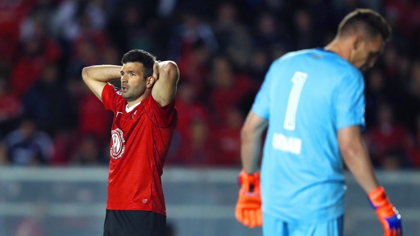 Sin embargo, a los 20 minutos apareció Maximiliano Meza con un remate impecable que hizo temblar a Franco Armani. El sonido metálico del travesaño paralizó a una defensa que no tuvo reacción, dado que el rebote que entregó el horizontal fue capturado por Hernández y el Tucu exigió al arquero con un tiro rasante. Como el manotazo del arquero dejó la pelota en el borde del área chica, un milagroso cierre de Maidana evitó el gol de Gigliotti.