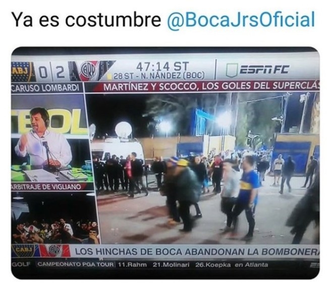 Muy poco después del partido, llegaron las cargadas y los memes. Las redes sociales se inundaron de burlas de parte de los hinchas millonarios a los xeneizes.