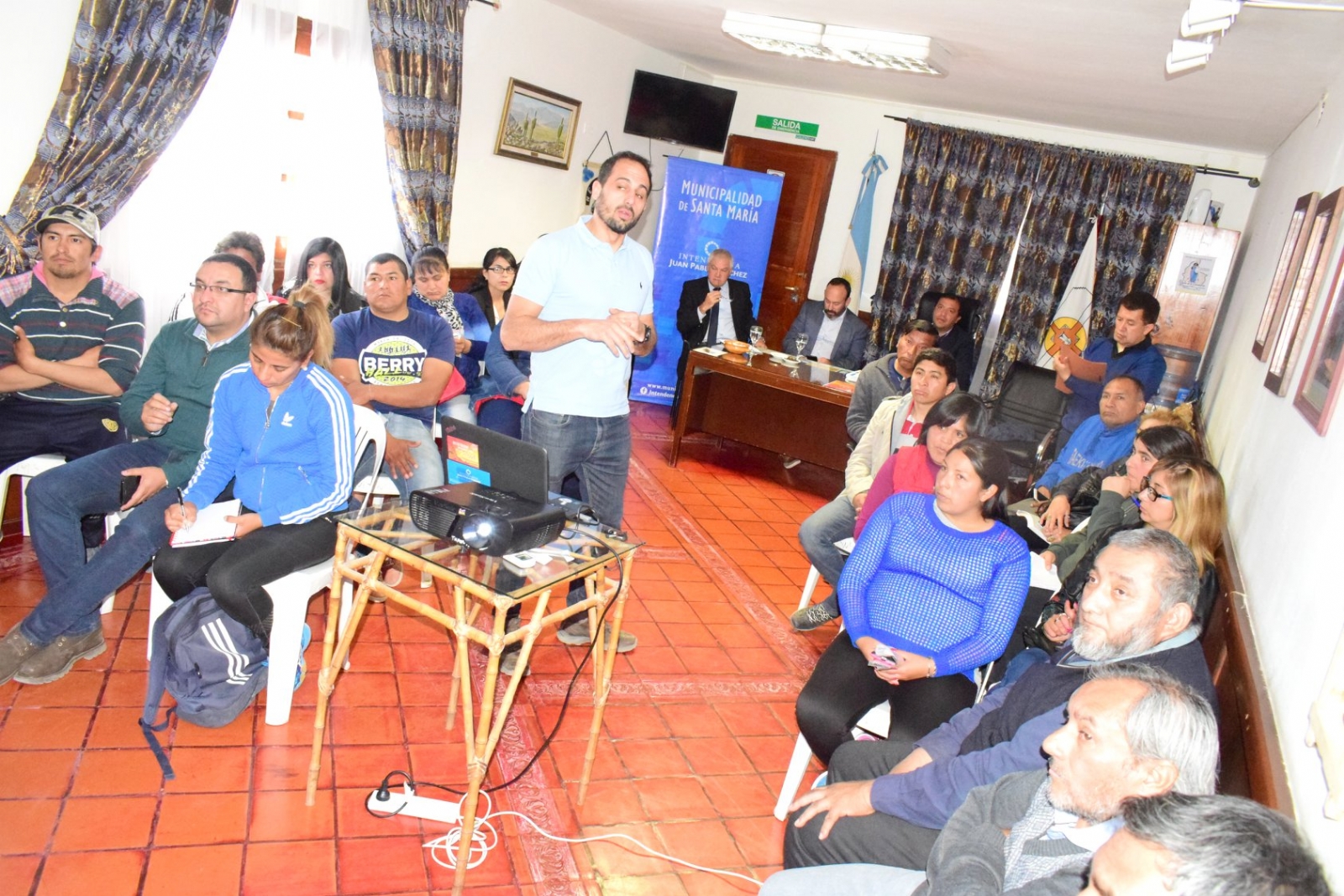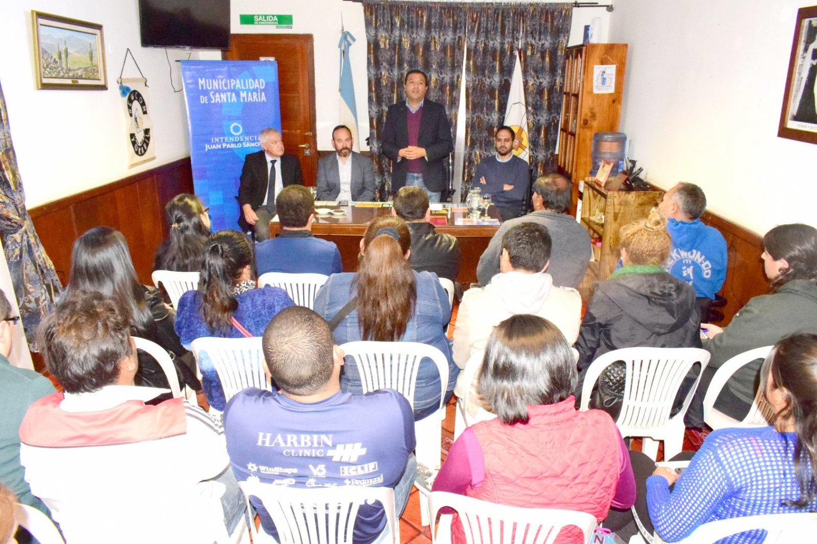 Santa María- Esta mañana, el intendente, C.P.N Juan Pablo Sánchez, recibió en su despacho al director de Gestión de la Secretaria de Deportes de la Nación, Enrique Martínez Luque, al coordinador Regional de Clubes Argentinos, Leonardo Ponzano, y al gerente del Banco Nación, Juan Carlos Figueroa, con motivo de brindar una charla informativa acerca del programa nacional, dónde clubes santamarianos ya fueron beneficiados en una primera etapa. “Venimos al interior profundo porque sabemos de sus necesidades. Quiero decirles que el trabajo articulado siempre da buenos resultados. Hemos implementado un nuevo sistema, en dónde todo se carga en la Web, pero sepan que deben apoyarse en su municipio, ya que son los que gestionan y recopilan la documentación necesaria para que todo llegue a buen puerto. Y hoy es un claro ejemplo, viendo a todos estos clubes que serán beneficiados”, fueron algunas de las palabras del director de Gestión de Deportes de la Nación.