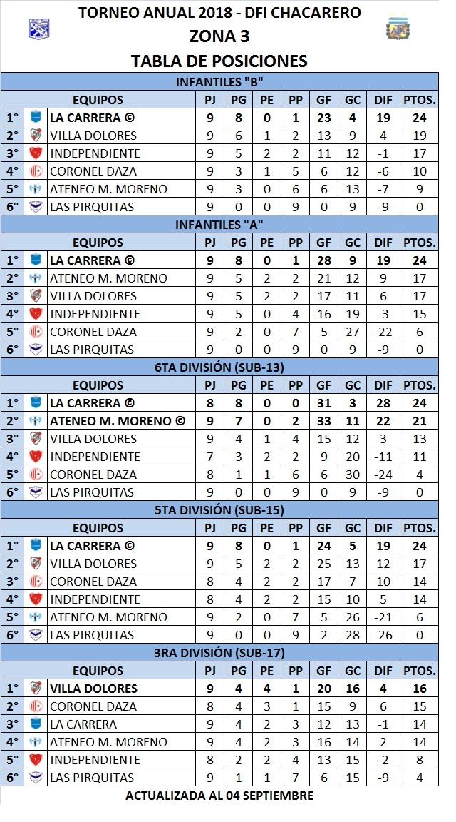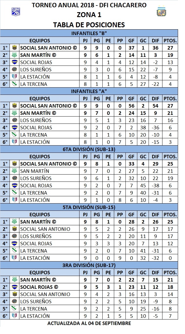 Cancha San Martín: Los Sureños vs. San Martín, 10hs en 6ta, 11hs en Inf A y 12hs en Inf B.