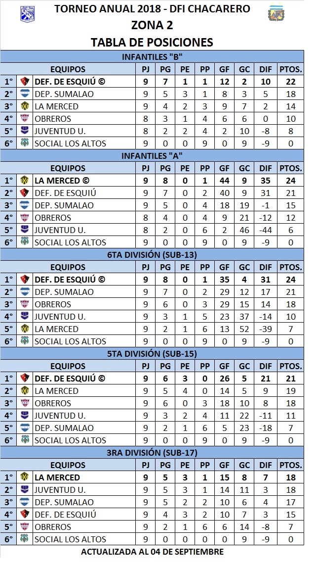 Cancha Obreros: Dep. Sumalao vs. Juventud U., 15:30hs en 6ta, 16:30hs en Inf A y 17:30hs en Inf B.