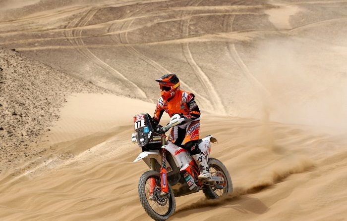 El estadounidense Ricky Brabec, tercero en la jornada motociclista, tomó la delantera en la general por delante del australiano Toby Price (KTM, +6 min 55 seg) y del francés Adrien van Beveren (Yamaha, +7 min 47 seg), mientras que Quintanilla no solo cedió la punta, sino que se vio superado por hasta cuatro rivales.