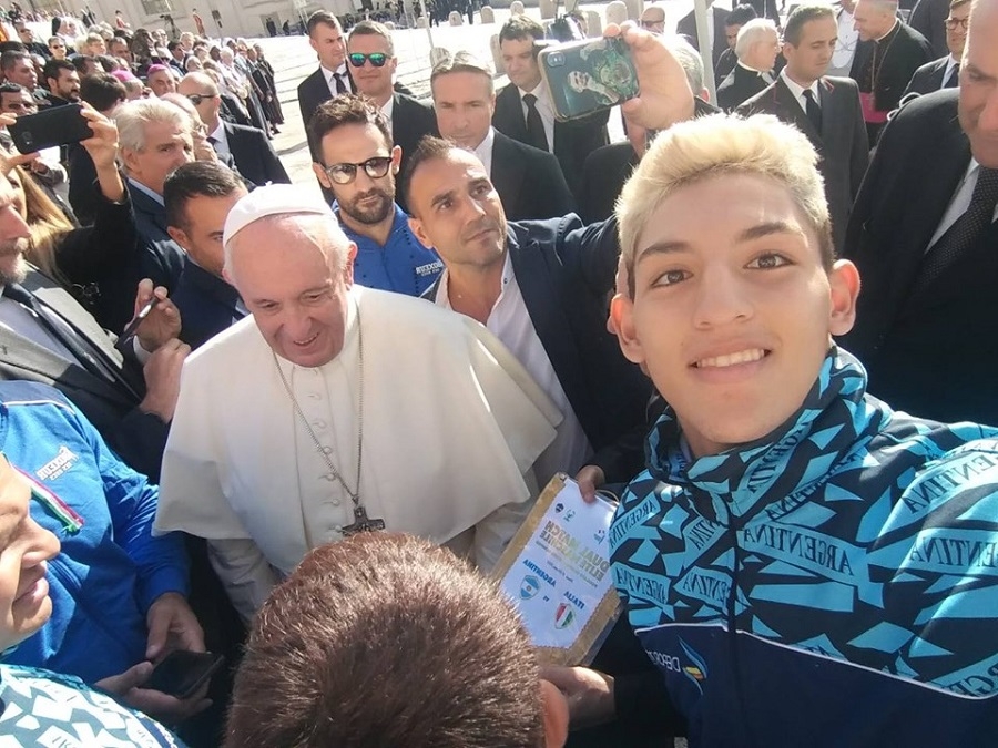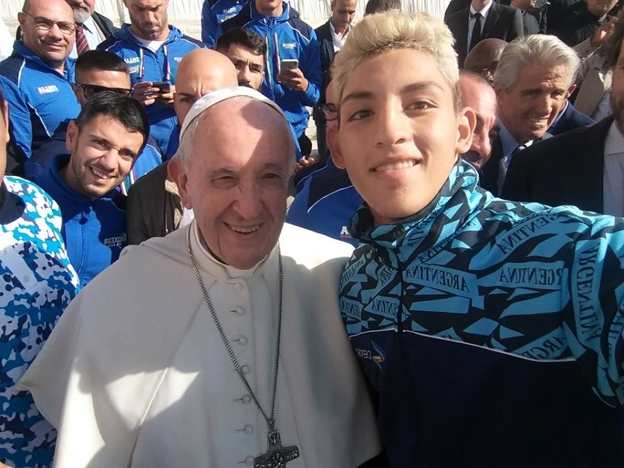 “No tengo palabras, solo voy a vivir este momento hermoso. Con el Papa Francisco, gracias Dios por darme estos momentos”, escribió emocionado el joven pugilista catamarqueño al trasmitir la noticia en su cuenta de Facebook.