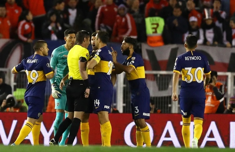Sin embargo, cuatro minutos después, se lo vio dialogar con el intercomunicador. Desde el VAR le advirtieron que existía un potencial penal en la acción que dejó pasar. Y decidió observarla en la pantalla que tiene en el campo de juego. Cuatro minutos después de la jugada, señaló el punto penal, ante las protestas airadas de los futbolistas de Boca. El propio Borré canjeó el remate por gol.