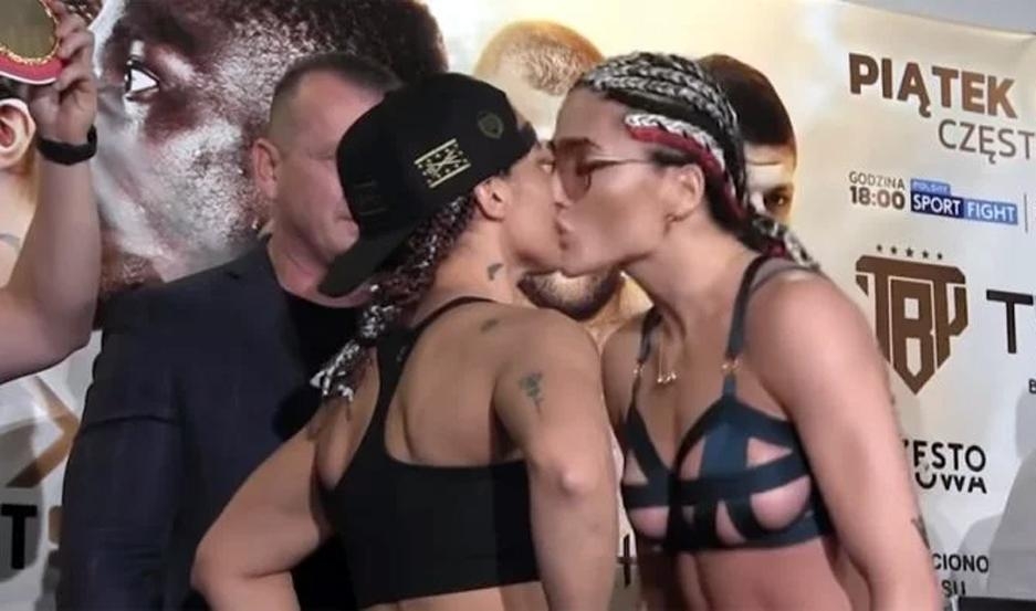 En el encuentro cara a cara, al bajar de la báscula, las boxeadoras se desafiaron con las miradas hasta que todo terminó a los golpes. Frente a frente para las cámaras, Brodnicka besó a Matthysse en la boca y la trelewense respondió con una cachetada a mano abierta.
