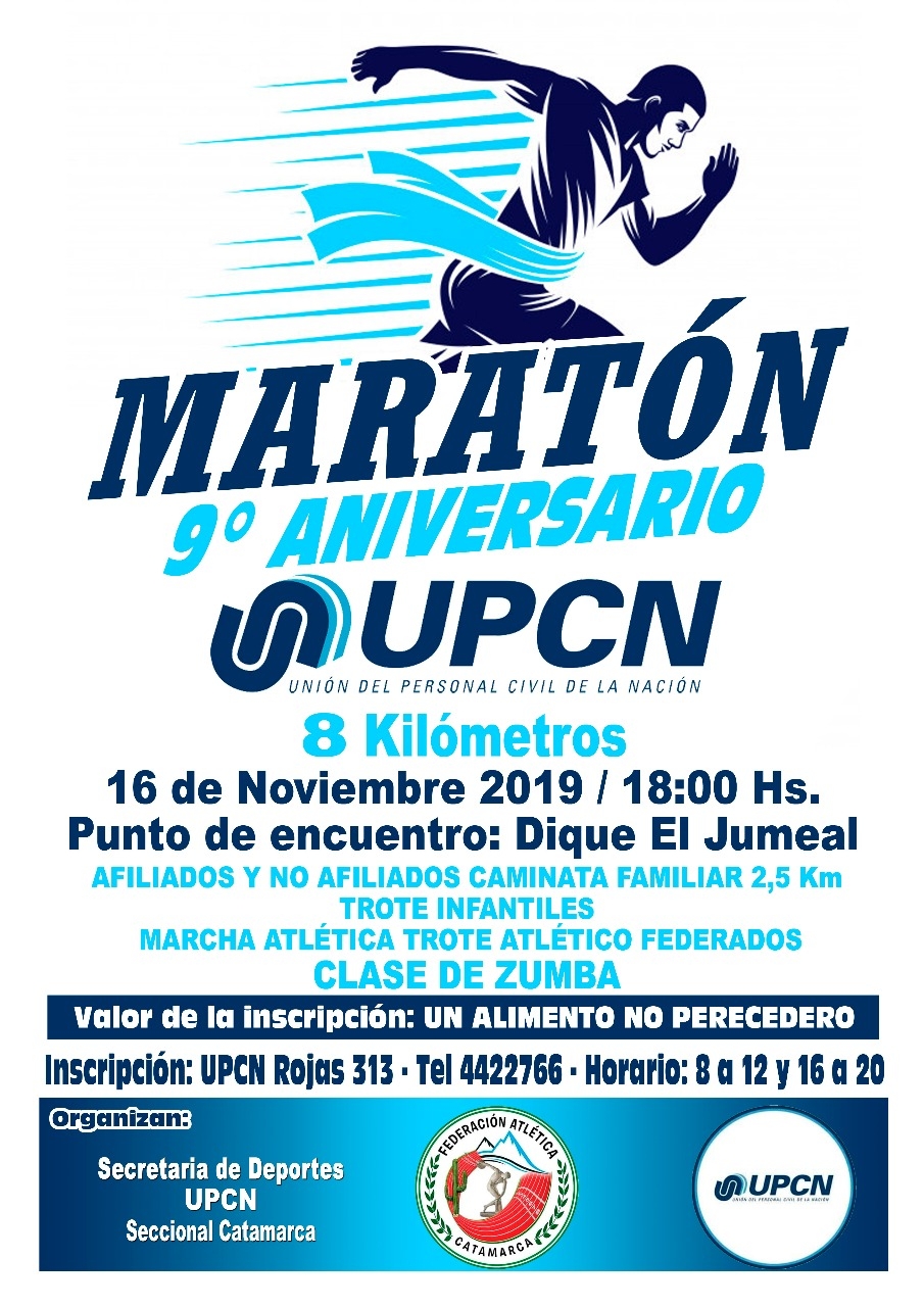La competencia organizada por la Secretaría de Deportes de la UPN Seccional Catamarca y Fiscalizada por la Asociación Catamarqueña de Atletismo, será el próximo sábado 16 de noviembre y tendrá su punto de encuentro en la plazoleta del dique “El Jumeal” con horario previsto de largada a las 18 hs.