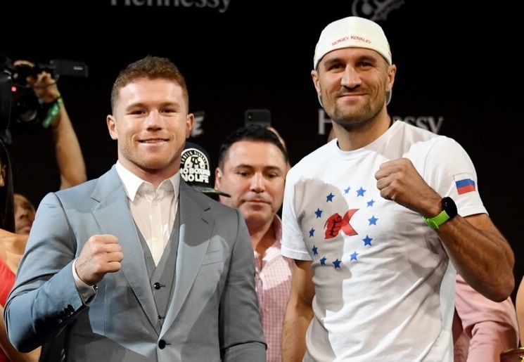 El ruso acusó en la balanza 175 libras (79.300 kg); mientras que Canelo subió a la báscula con 174.5 libras (79,100 kg). En total, son casi siete kilos más que en su pelea contra Daniel Jacobs, la última presentación oficial en mayo de este año y por el peso mediano.