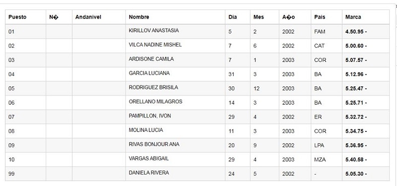Integrante de la agrupación “Las Panteras Runners” de Santa María, Nadine bajó en más de 2 segundos su anterior marca de 5:02.67; manteniéndose segunda en el Ranking de la Confederación Argentina de Atletismo, detrás de la vigente campeona, la porteña Anastasia Kirillov que ganó la prueba en 4:50.95. Completó el podio la local Camila Ardisone quien marcó 5:07.57 entre 11 competidoras de varias provincias argentinas.